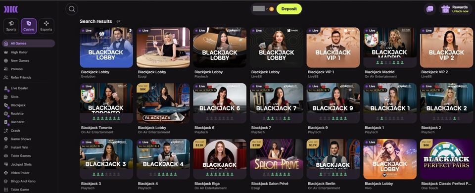 It is licensed and audited, with SSL encryption for security. Cloudbet’s live casino, via Ezugi and Vivo Gaming, brings live dealer blackjack to mobile and desktop. Overall, Cloudbet is a crypto blackjack casino suited to serious players who want deep liquidity and rapid transactions.