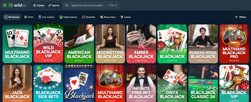 Wild.io is a Curaçao-licensed crypto casino that excels in Bitcoin blackjack. It uses top-tier security, 512-bit TLS encryption, and optional 2FA to protect your account. The site’s game library is massive, at approximately 9,000 games, including hundreds of blackjack games like video blackjack, multi-hand, and Live crypto blackjack.