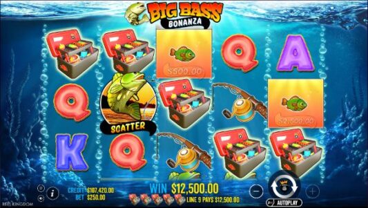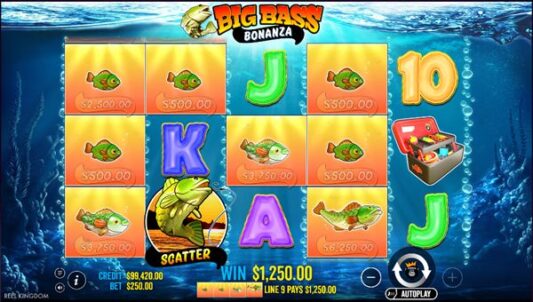 In Pragmatic Play’s slot Big Bass Bonanza, you’ll get to relax by the river while you try to catch fish on the reels. A classic 5-reel and 10-winning-line setup offers a free spin feature, increasing multipliers, and a top win of up to 2,100x the stake.